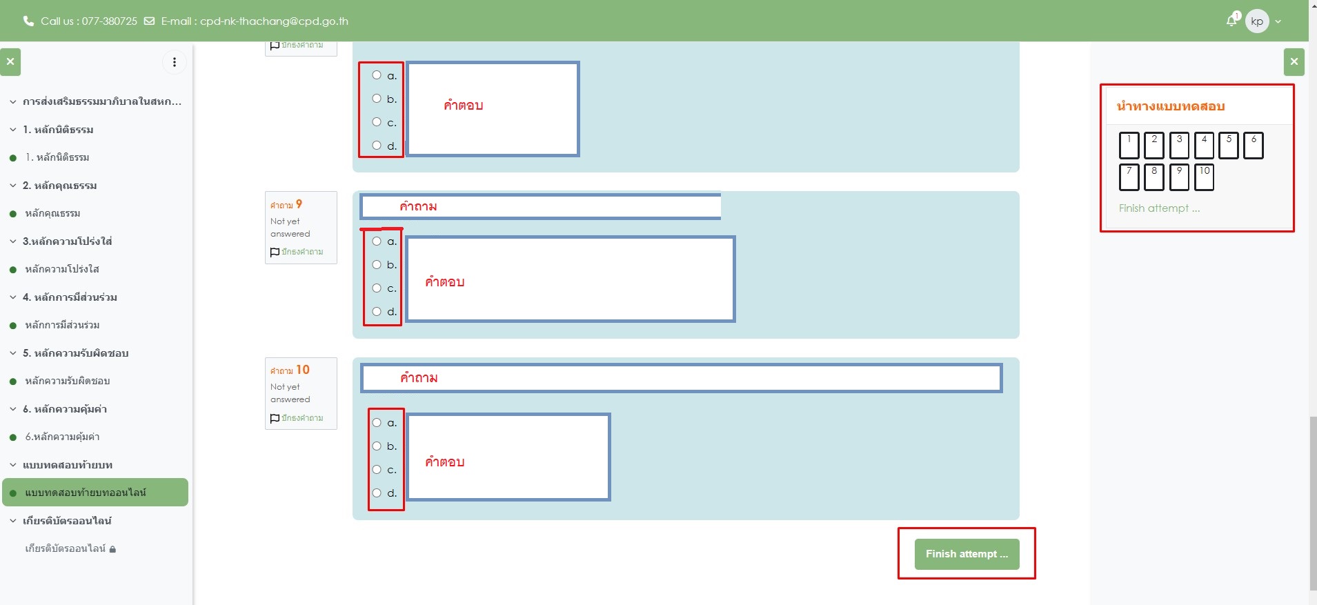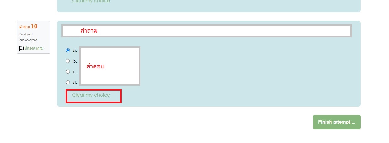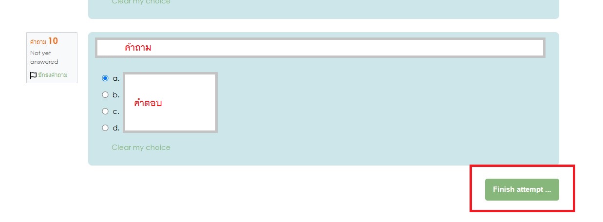 • 3.1 ท่านสามารถส่งข้อสอบโดยการกดปุ่ม "finish Attempt"